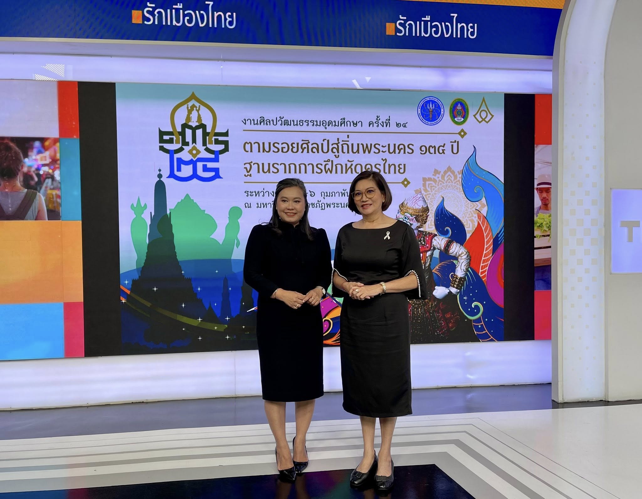 ผู้ช่วยศาสตราจารย์ ดร.กัญณภัทร นิธิศวราภากุล ผู้อำนวยการสำนักศิลปะและวัฒนธรรม มหาวิทยาลัยราชภัฏพระนคร ร่วมบันทึกเทปทางสถานีโทรทัศน์ช่อง TNN2 (True Visions784) รายการ รักเมืองไทย ดำเนินรายการโดย ดร.ฐาณิญา พงษ์ศิริ เพื่อประชาสัมพันธ์งานศิลปวัฒนธรรมอุดมศึกษา ครั้งที่ ๒๔ “ตามรอยศิลป์สู่ถิ่นพระนคร ๑๓๔ ปี ฐากรากการฝึกหัดครูไทย“ ซึ่งมหาวิทยาลัยราชภัฏพระนครได้รับเกียรติให้เป็นเจ้าภาพในการจัดงานระหว่างวันที่ ๔-๖ กุมภาพันธ์ ๒๕๖๙ ณ มหาวิทยาลัยราชภัฏพระนคร
